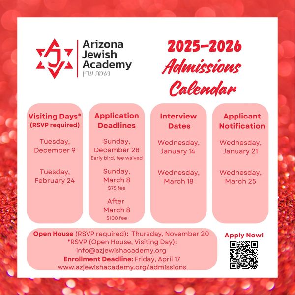 We look forward to getting to know you better during this process and in turn, helping you learn what makes Arizona Jewish Academy an amazing high school opportunity!